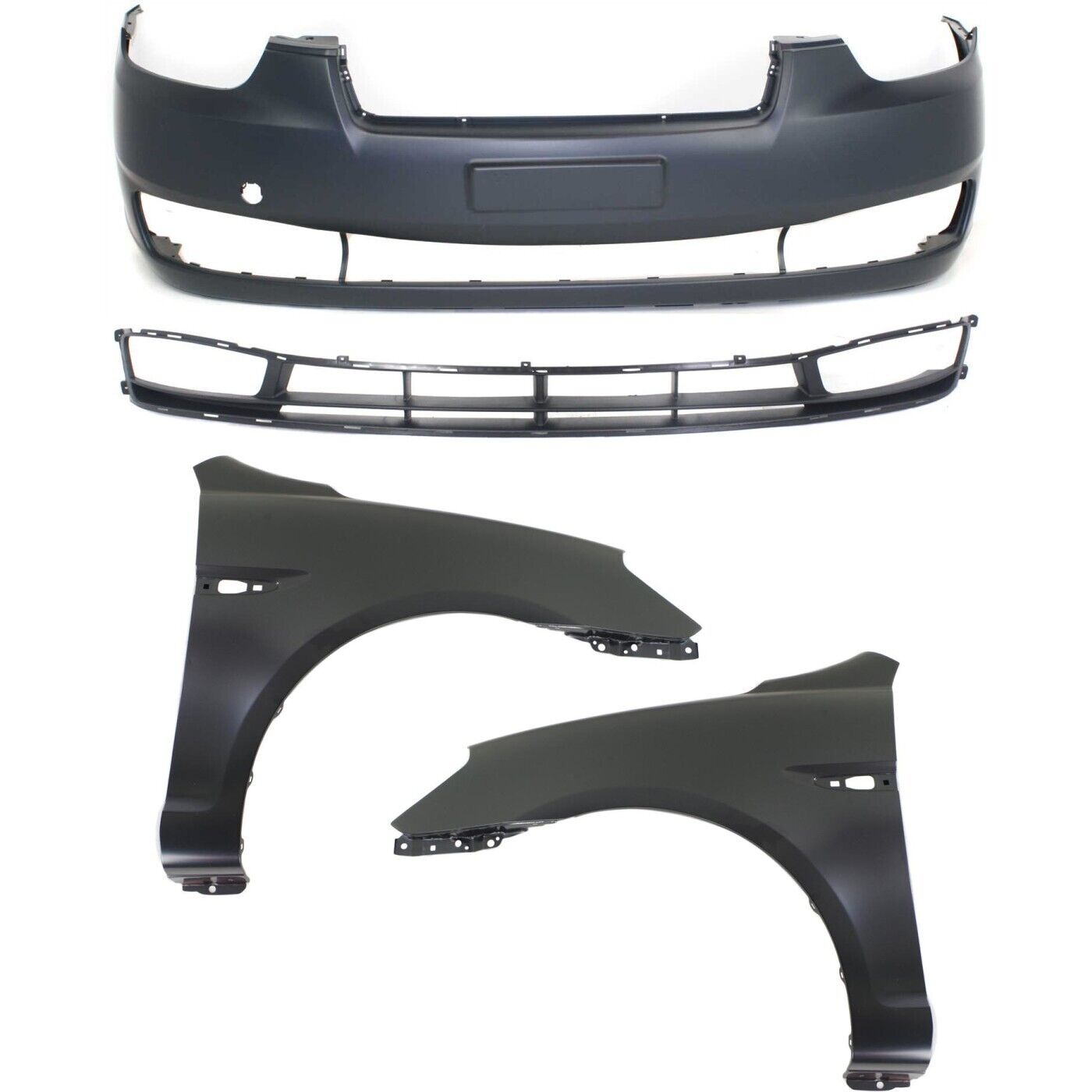 New Front Bumper Covers, Fog Lights set of 3 pc for 2012-2013 Hyundai Accent
