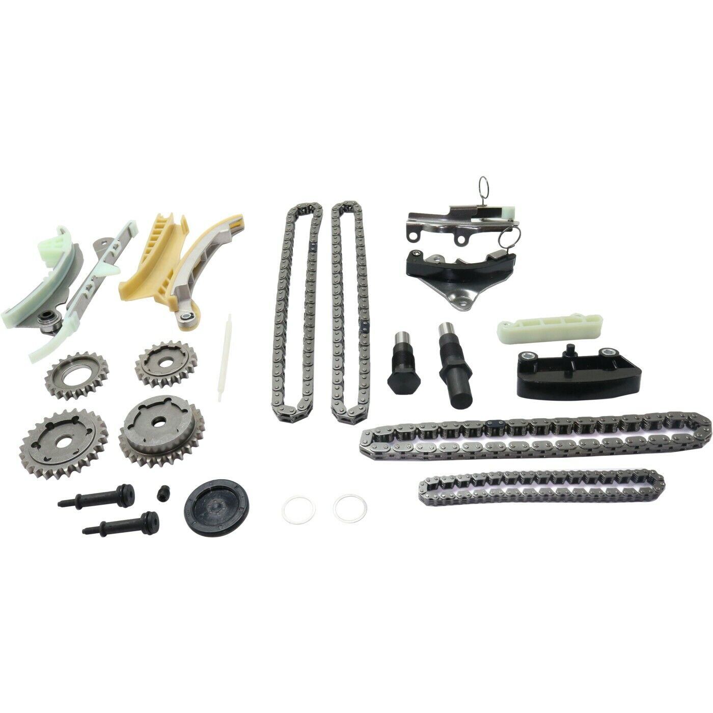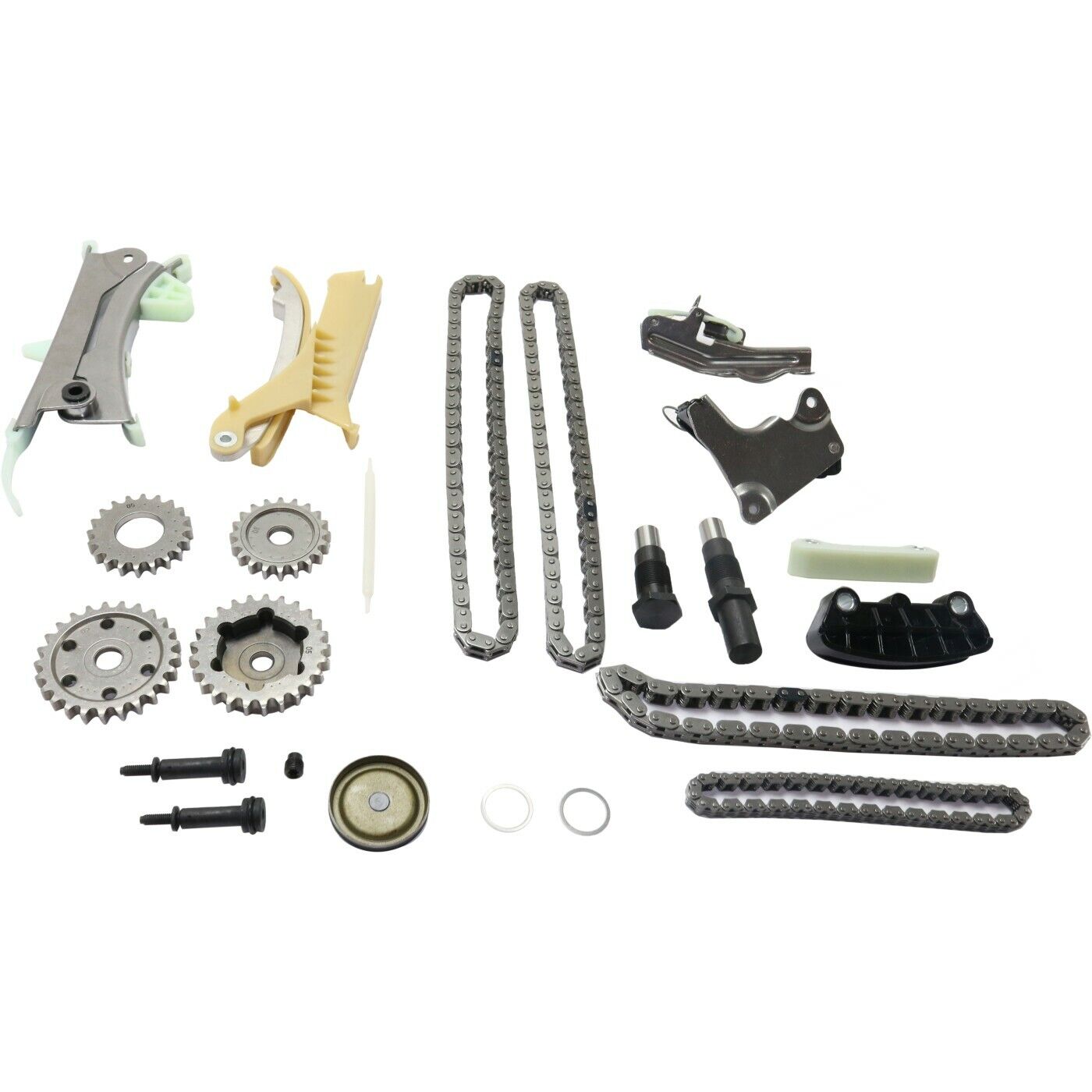 - Notes : (1) Primary Timing Chain, (1) Shaft Chain, (2) Cassettes, (2) Camshaft Sprockets, (1) Idler Sprocket, (1) Crankshaft Sprocket, (2) Tensioners, (1) Primary Tensioner, (1) Shaft Tensioner, (2) Guide Rails, (2) Washers, (1) Oil Line Restrictor